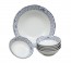 Modré ornamenty doplněné květinovými motivy evokují vzhled a strukturu pletené tkaniny. Vyvolává pocit klidu a pohody domácího prostředí. Lze použít v mikrovlnné troubě i myčce nádobí.
